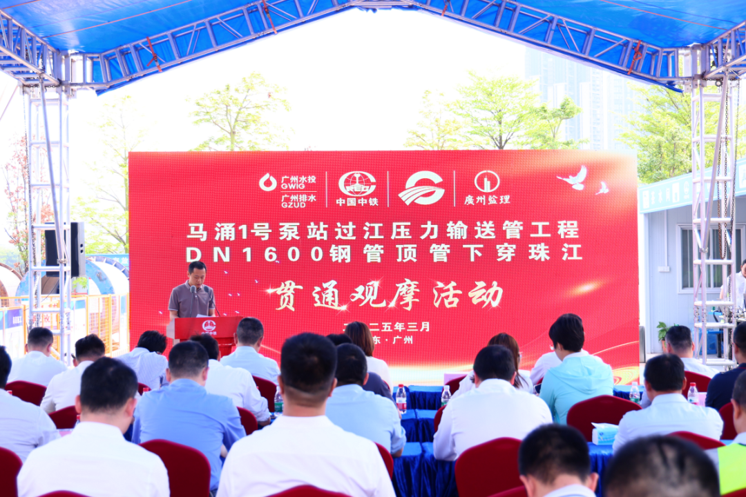 3月27日上午,马涌1号泵站过江压力管工程顶管下穿珠江段贯通观摩活动在广州市荔湾区广船滨江公园举行。啪啪啦 、海珠区水务局、荔湾区水务局、广州水投、各参建单位代表参加。